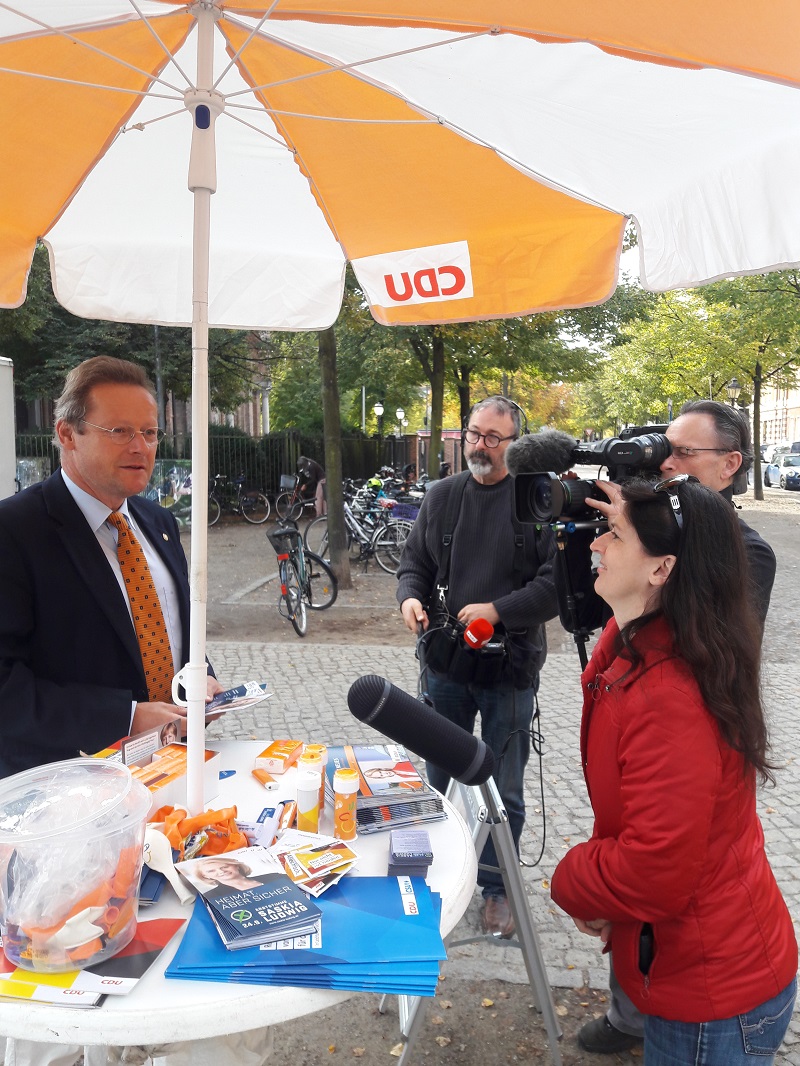 Dies bemerkte auch ein Kamerateam von "RBB-Aktuell", das heute Morgen einige Bilder und O-Töne an unserem Infostand für die heutige Abendsendung einfing.