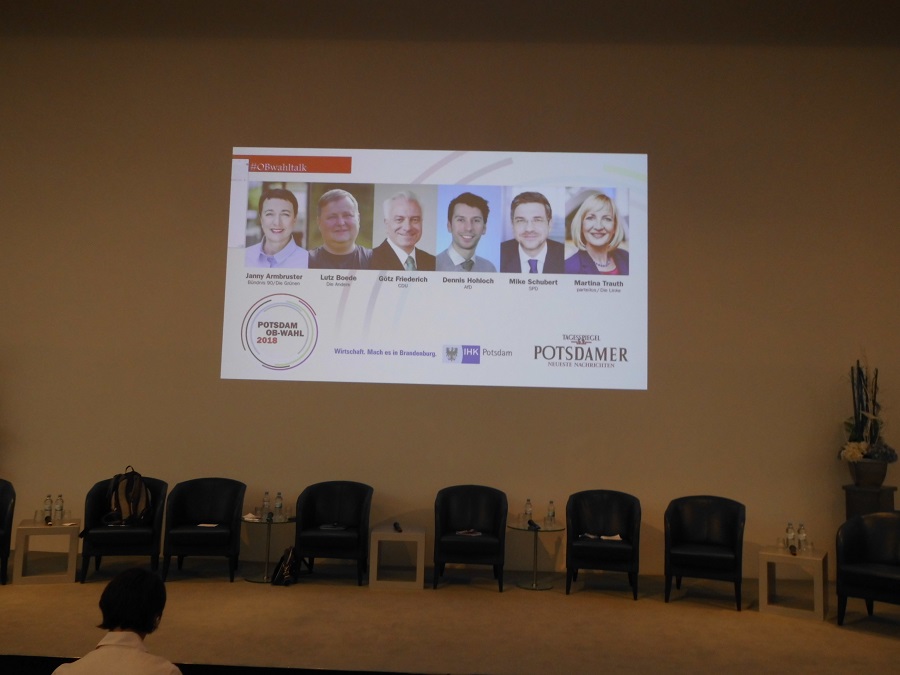 Die Potsdamer Neuesten Nachrichten luden am Montagabend zum Streitgespräch der sechs Kandidaten der Oberbürgermeisterwahl am 23. September ein. Austragungsort war die IHK in der Breite Straße. Es wurden 90 unterhaltsame, teilweise turbiulente, Minuten. Unser Stadtbezirksverband war wie immer auch hier präsent und mit unserem Vorsitzenden, Dr. Wieland Niekisch, sowie zahlreichen Mitgliedern vertreten.