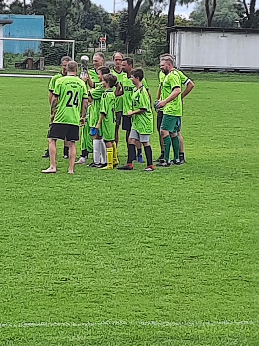 Eingerahmt wurde das sportliche Ereignis, neben (wie eigentlich immer bei uns) gutem Wetter, von einer großartigen Atmosphäre, in der bei spielerischen Löschübungen der Freiwilligen Feuerwehr Golm, einer vom Verein Grün-Weiß gestellten Hüpfburg (Dank an den Vorsitzenden Olav Schreiter und sein tolles Team vom Vorstand!), einem gut bestückten Getränkewagen (Danke an die lieben Spielerfrauen, die das Zapfen für die gute Sache mit Bravour erledigten!), Würstchen vom Grill (Danke an Platzwart André Stohf, der sicherlich 20 Pfund in der Hitze des Grills "entschlacken" konnte!) und vielem, vielem mehr jeder auf seine Kosten kam.